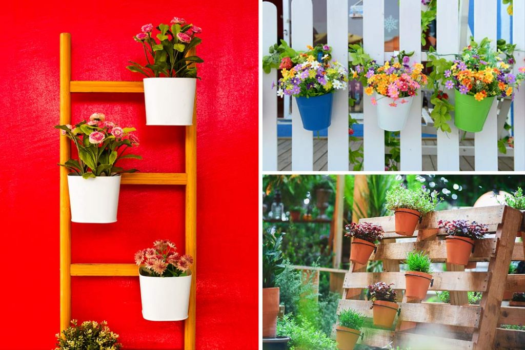 Make easy hanging planters in your garden by using wooden pallets. Wooden pallets are usually sectioned out, so you can just hang half of a wooden pallet up on a wall to make your own hanging garden. Put all types of tiny herbs or other plants into the boxes and create a live growing space. You can also easily create a shelf using wooden pallets and protect it using Universal Wood Protector; then, put some beautiful small planters on your wooden pallet shelf to flaunt your plant collection.