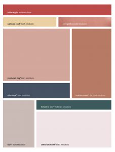 “Soft skin tones from fair pink, through warm nudes to a complementary bronze, with a touch of daring red to add boldness and definition – this colour palette is very feminine. The beauty of these warm shades creates an inviting and cosy space.”