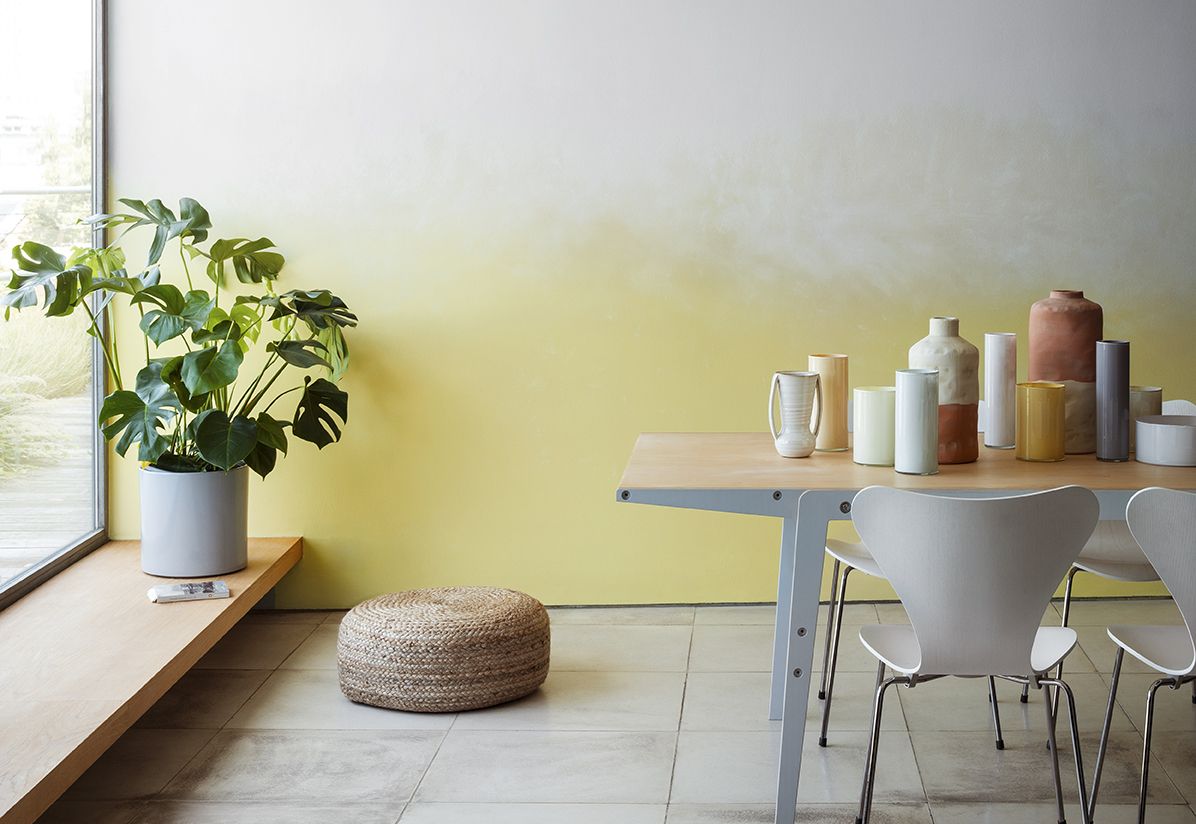 You can create a similar look in your kitchen where we have used Lemon Squash and Canvas White. We particularly love how Lemon Squash is so uplifting yet when mixed and turned to Ombre is also so calming.