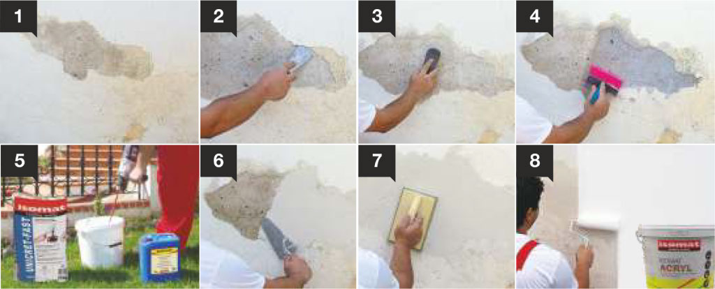 - Η αποκατάσταση γίνεται με UNICRET-FAST, ενισχυμένα με την προσθήκη της ρητίνης ADIPLAST.