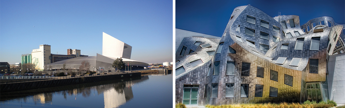 Το Μουσείο Μοντέρνας Τέχνης στη Νέα Υόρκη μπορεί να υπερηφανεύεται για την “Αρχιτεκτονική του Αποδομισμού”, η οποία έχει και στοιχεία από αρχιτέκτονες όπως οι Frank Gehry και Zaha Hadid. Μερικοί αρχιτέκτονες έχουν αποστασιοποιηθεί από αυτό τον όρο, αλλά ακόμα και σήμερα χρησιμοποιείται ως ορισμός. Η αρχιτεκτονική σήμερα εστιάζει σε υλικά αντί σε βαφές, επομένως δεν περιλαμβάνεται μια παλέτα χρωμάτων σε αυτή και στην επόμενη κατηγορία.