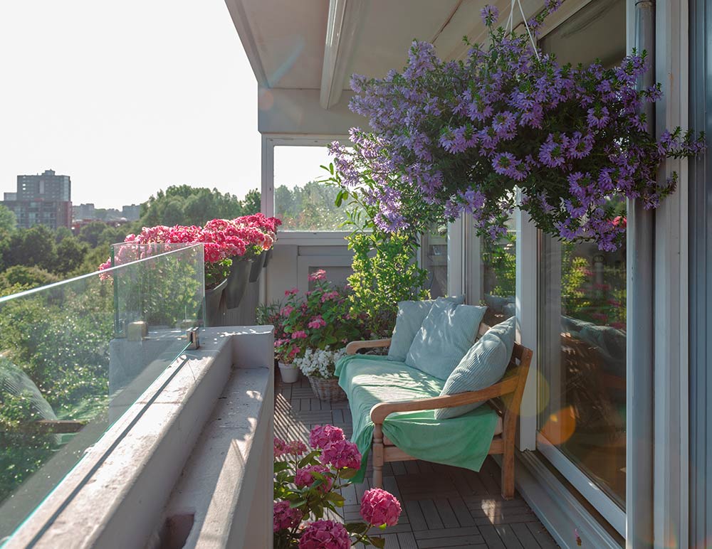 Υπάρχουν διάφοροι τρόποι για να μετατρέψετε το πληκτικό και βαρετό μπαλκόνι σας σε ένα μέρος όπου μπορείτε εύκολα να περάσετε ολόκληρη την ημέρα σας. Όλα εξαρτώνται από τη δομή του μπαλκονιού σας και τις προτιμήσεις σας. Για μπαλκόνι με σχετικά μικρότερο πάτωμα και κάγκελα, με χώρο μόνο για ένα μικρό τραπέζι, μια καρέκλα ή και τα δύο, και χώρο για μερικές γλάστρες, μαζί με τη χρήση ελαφρύτερων τόνων από χρώματα εξωτετικών τοίχων και κάγκελα/κιγκλιδώματα με γυαλί αντί για συνηθισμένα ανοξείδωτα κάγκελα, μπορείτε να δημιουργήσετε μια ψευδαίσθηση διευρυμένου χώρου στο μπαλκόνι σας.