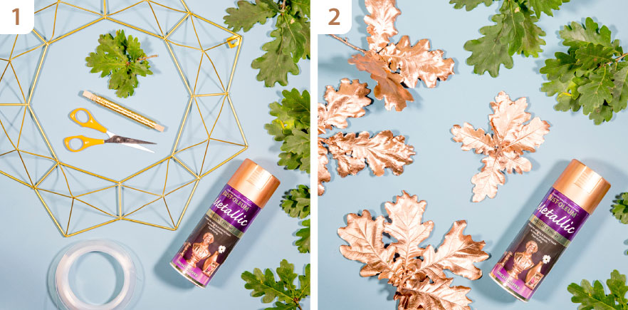 Αυτό το γεωμετρικό στεφάνι ομορφαίνει τον χώρο σας και είναι επίσης απεριόριστα προσαρμόσιμο, απλά αλλάξτε τα φύλλα και το χρώμα όσο συχνά θέλετε με τη σειρά σπρέι μεταλλικών αποχρώσεων της Rust-Oleum.