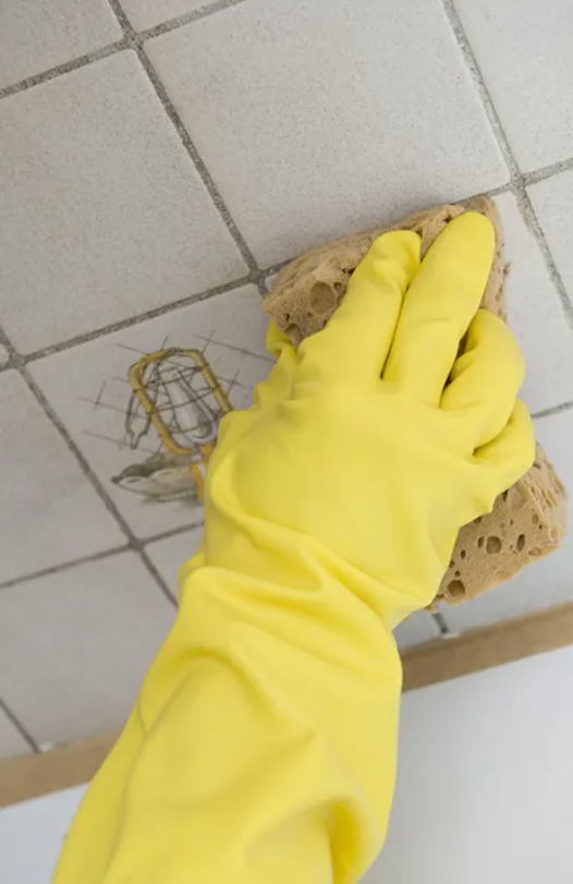 Πριν ξεκινήσετε να βάφετε τα πλακάκια, απολιπάνετε και καθαρίστε την επιφάνεια χρησιμοποιώντας ένα σφουγγάρι και απορρυπαντικό με βάση τη σόδα. Επιμείνετε στις γωνίες και στους αρμούς των πλακιδίων και στη συνέχεια ξεπλύνετε.