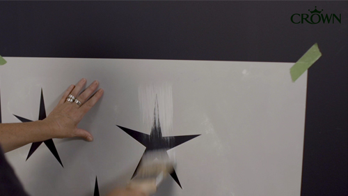 1. Ξεκινώντας από τις άκρες, τοποθετήστε το stencil στον τοίχο.