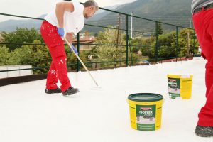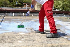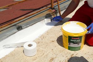 5. Στη συνέχεια η ταράτσα επαλείφεται καθολικά με ISOFLEX HYBRID, με χρήση βούρτσας ή ρολού.