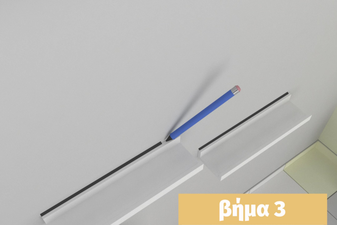 Με ένα μολύβι τραβάμε μια γραμμή κατά μήκος του πάνω μέρους του ραφιού και έπειτα αφαιρούμε τα ράφια.