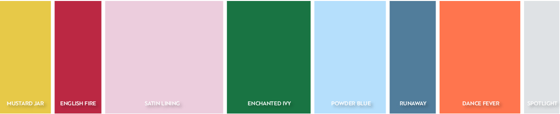 “Αυτή η συλλογή παιχνιδιάρικων χρωμάτων αντικατοπτρίζει μια φανταστική και κατάλληλη προσέγγιση στους εσωτερικούς χώρους. Με δυναμικούς τόνους, κάθε συνδυασμός επιτρέπει ένα συνδυασμό χρωμάτων που αγκαλιάζει την ατομικότητα, με αποτέλεσμα να δημιουργούνται ιδιαίτεροι χαρούμενοι χώροι. Είτε πρόκειται για κιτς έπιπλα ή για διασκεδαστικά συλλεκτικά αντικείμενα, αυτά τα χρώματα ενώνονται για να παράγουν μια εμφάνιση που προσθέτει ένα χαμόγελο στο πρόσωπό σας.”