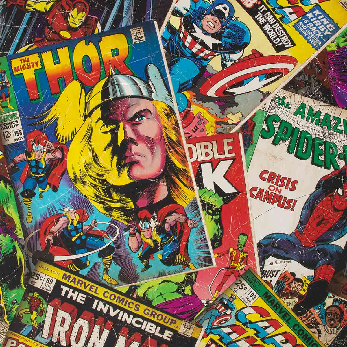 Προσθέστε στους χώρους σας τη διασκεδαστική ζωντάνια των κόμικς Marvel, με αυτό το φωτεινό και πολύχρωμο σχέδιο ταπετσαρίας. Μια συλλογή κληρονομιάς έργων τέχνης, με την ατμόσφαιρα της ποπ κουλτούρας, που μας ταξιδεύει στο χρόνο και στην ιστορία των Marvel, γιορτάζοντας με νοσταλγία την υπέροχη εποχή των κόμικς
