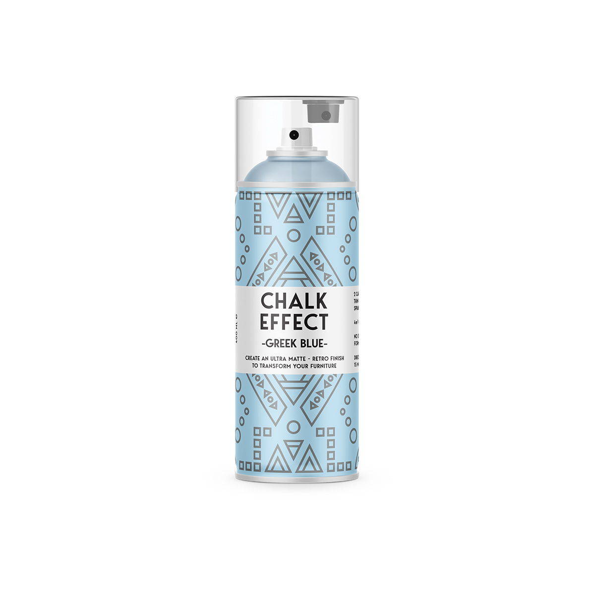 Ματ χρώμα κιμωλίας Spray Chalk Effect, ιδανικό για ξύλο, μελαμίνη, καμβά, μέταλλο, γυαλί και χαρτόνι. Για τους φίλους της διακόσμησης αλλά και τους επαγγελματίες.
