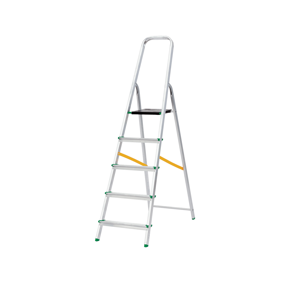DIY σκάλα αλουμινίου με ράγα ασφαλείας και σκαλοπάτια αντιολισθητικής ραβδωτής επιφάνειας.