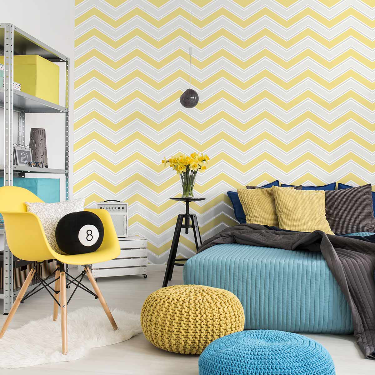 Ταπετσαρία με ζωντανά, μοντέρνο στιλ και εφέ ζιγκ-ζαγκ