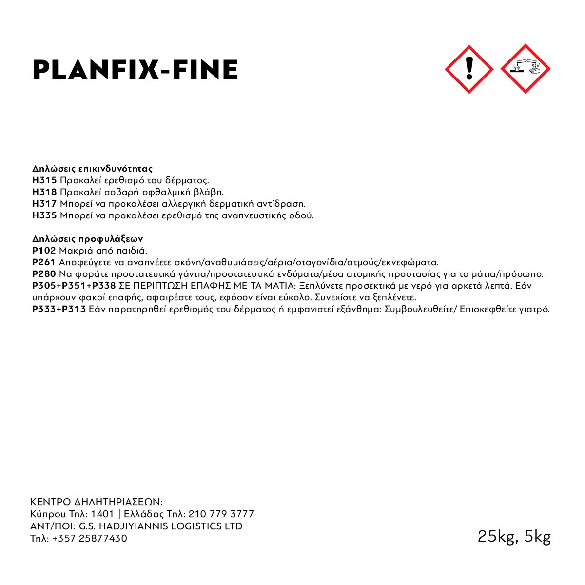 Ρητινούχος τσιμεντόστοκος Planfix-Fine, ιδιαίτερα λεπτόκοκκος, για σπατουλάρισμα και στοκάρισμα επιφανειών εμφανούς σκυροδέματος. Εφαρμόζεται και με μηχανή εκτόξευσης. Κατατάσσεται ως επισκευαστικό κονίαμα σκυροδέματος τύπου PCC R2 κατά ΕΝ 1504-3.