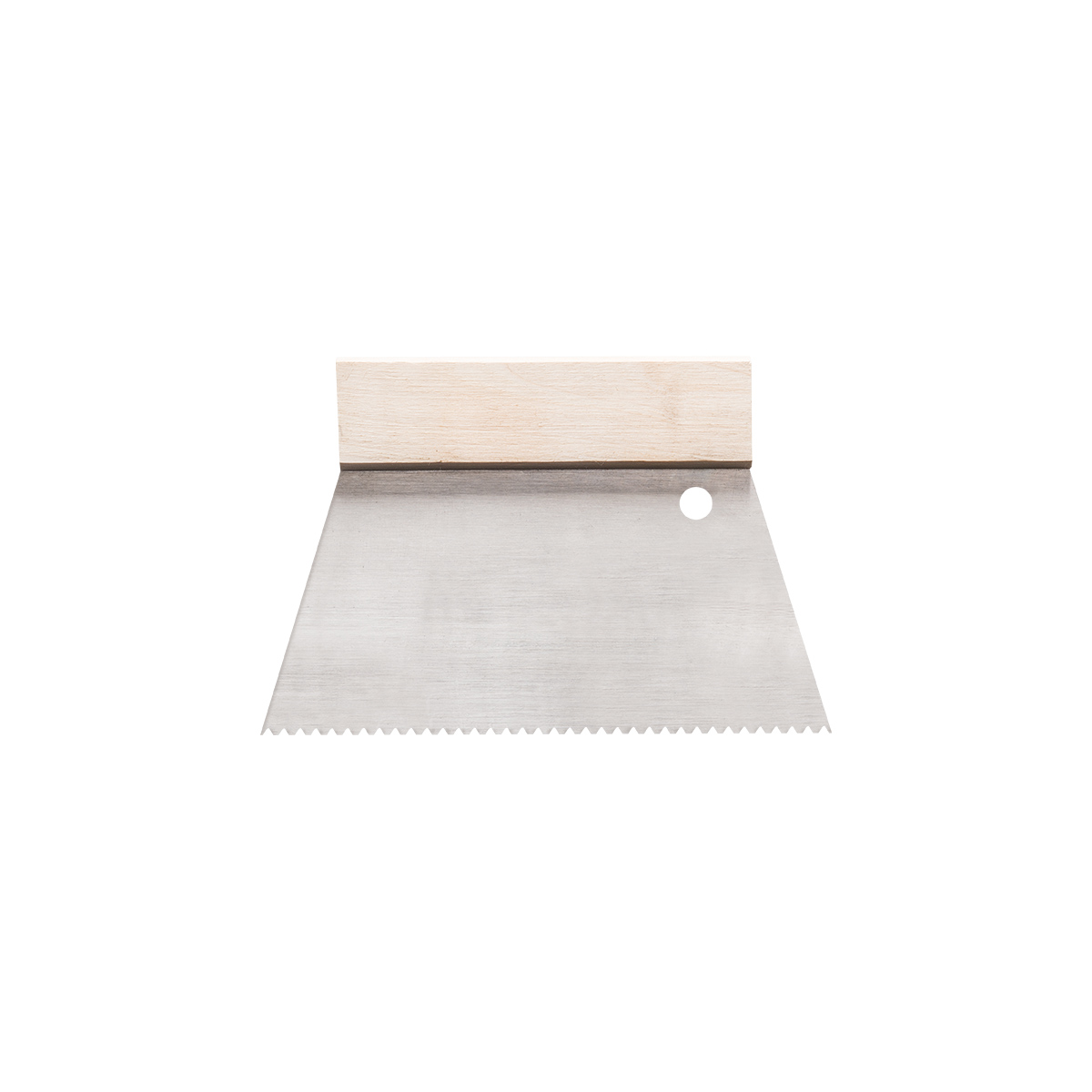 Σπάτουλα πλακάδων με ψιλό δόντι και ξύλινη λαβή.
