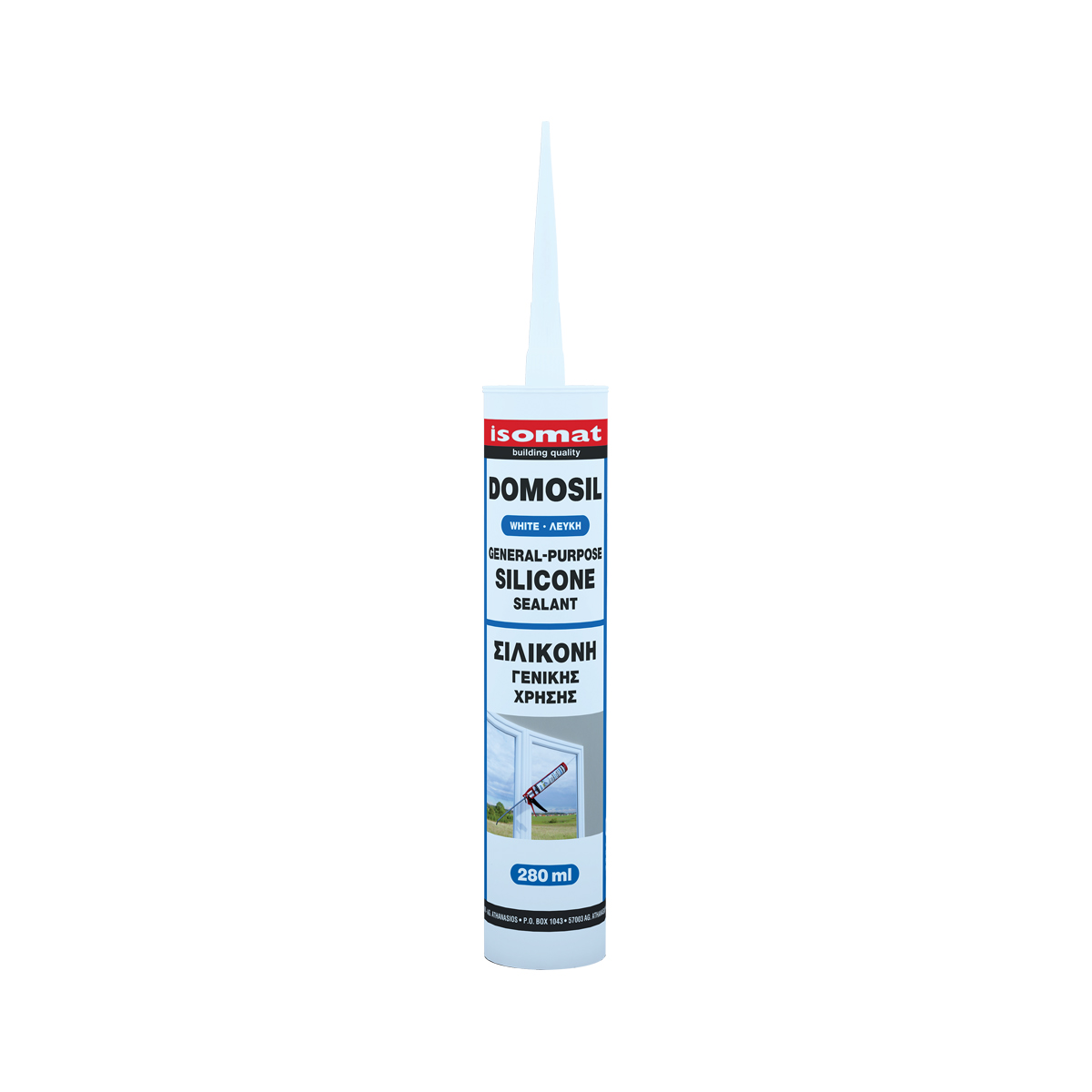 General purpose silicone Domosil, suitable for sealing vertical and horizontal joints 3-40 mm wide on non-porous material surfaces such as glass, aluminium, porcelain (tiles etc) and non-porous ceramics.
