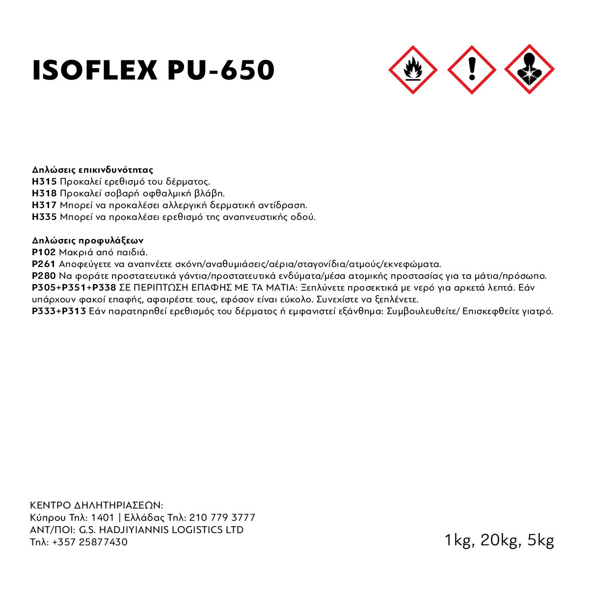Isoflex PU-650 is a polyurethane, spreadable sealant of one ingredient.