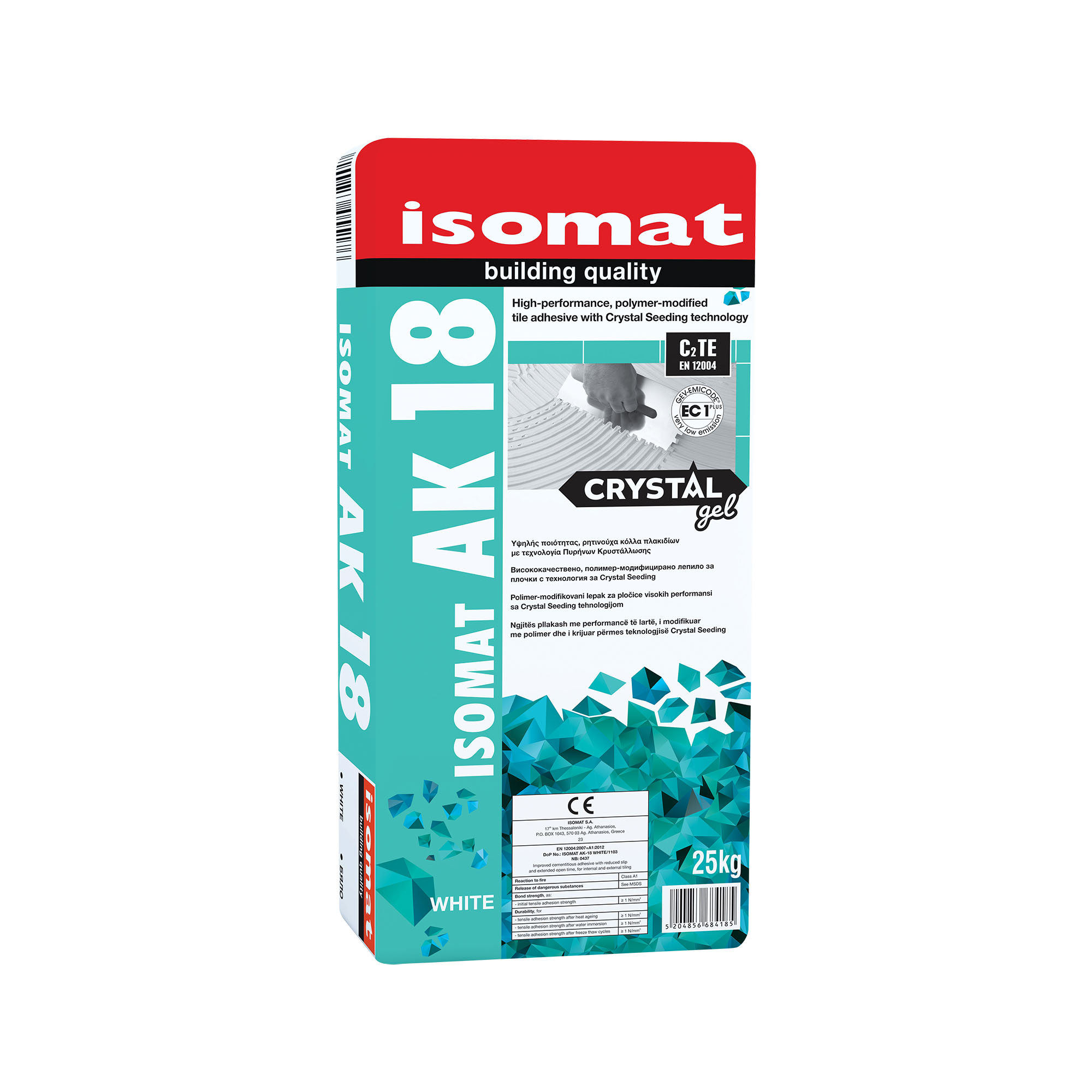 ISOMAT AK-18 CRYSTAL GEL is a high-performance, cement-based tile adhesive, enhanced with resins (polymers). Expertly formulated with ISOMAT’s innovative Crystal Gel technology combining the Crystal Seeding technology with Gel properties in one product.