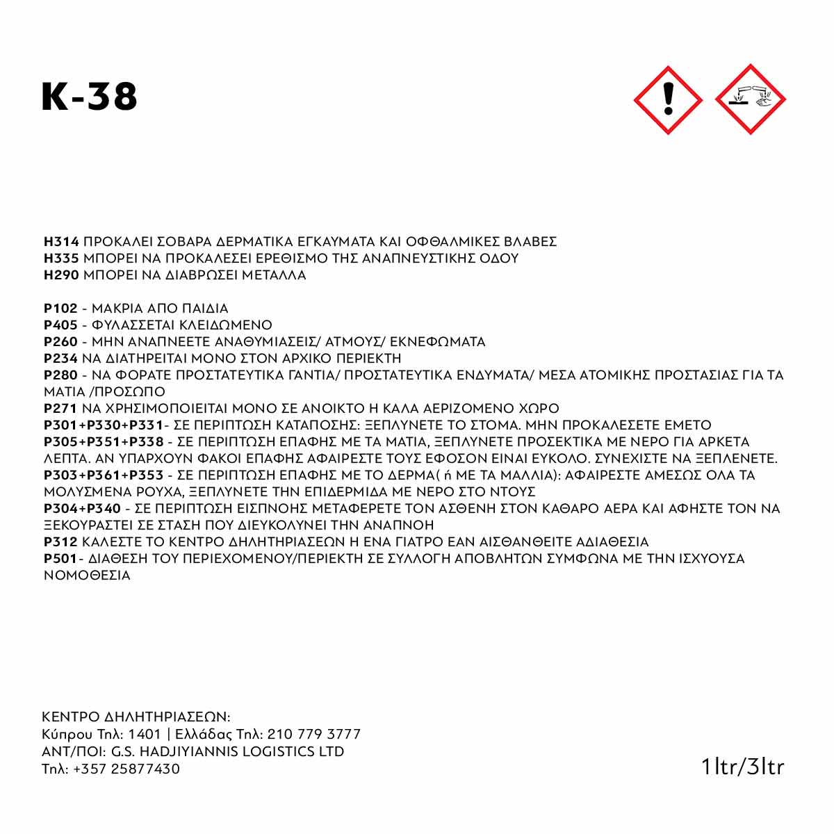 K-38 is a powerful acid cleaning liquid, which is ideal for effective cleaning of natural stone.