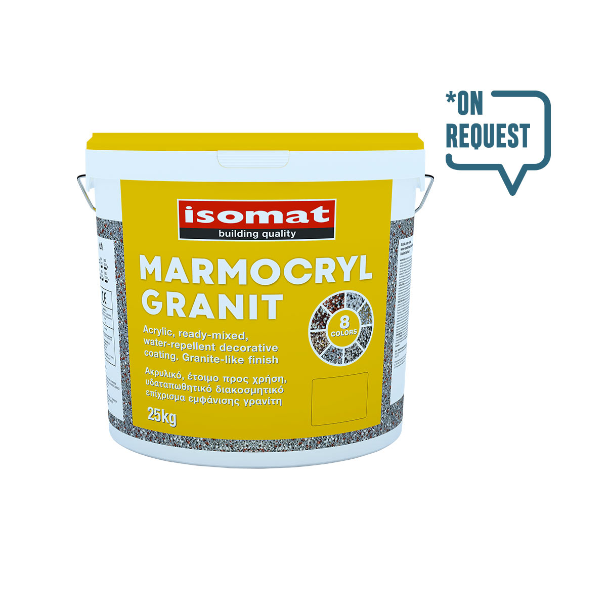 Water-repellent pasty acrylic coating consisting of fine-graded colored aggregates used to deliver a decorative, roughtextured, granite-like finish.