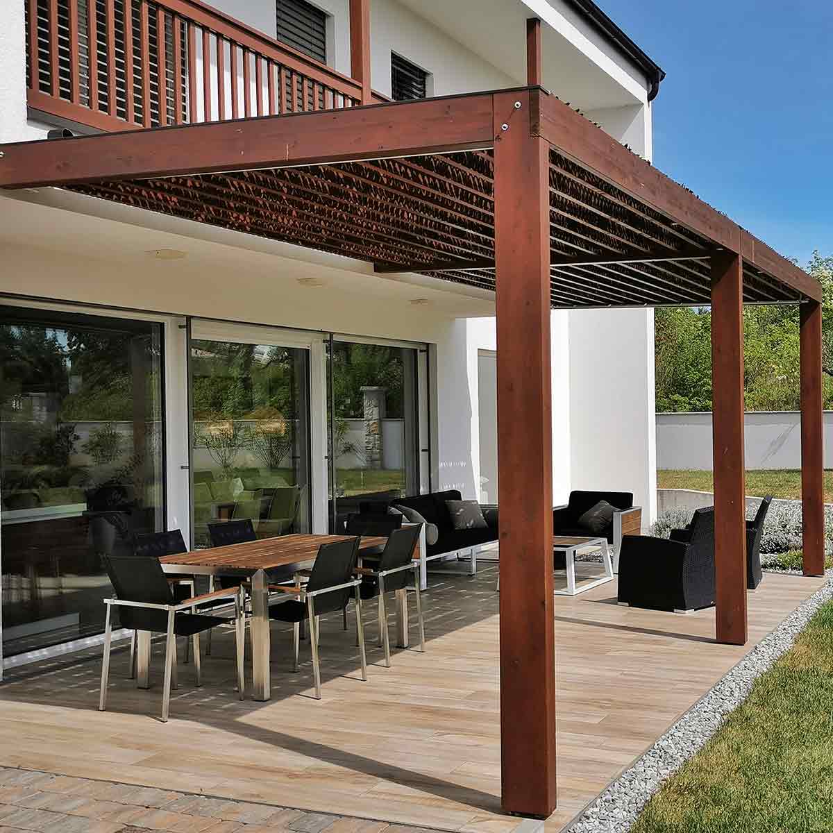 Satin, water-based impregnation wood varnish Aquagel Woodstain, highly resistant to UV radiation and weather conditions, in a non-dripping gel formula.