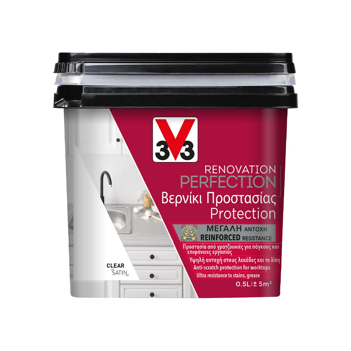 The Renovation Perfection protection has been specially designed to durably protect highly stressed surfaces and materials. Thanks to the combination of specific polymers and of the Additiv System, a true performance booster, it protects the Renovation Perfection paint from impacts and scratches specific to worktops.