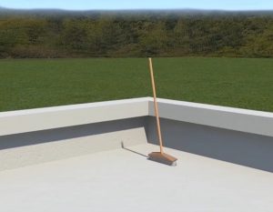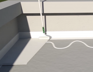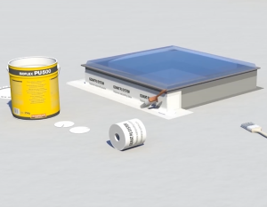 4. A local waterproofing at the joints (guardrails, skylights) follows. It is smeared with ISOFLEX-PU 510 and a 60gr/m² polyester fabric film is placed and incorporated in its fresh layer.
