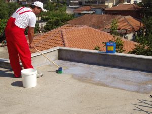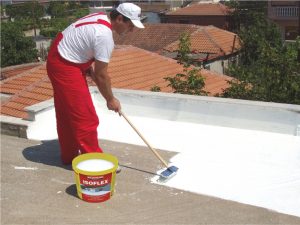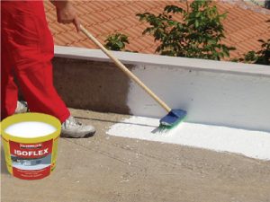 3. After the primer dries, an ISOFLEX layer is applied locally along the roof junction with vertical elements (railings, etc.) as well as along existing cracks, as well as at the junction of the roof with vents, chimneys, gutters, etc.
