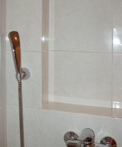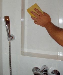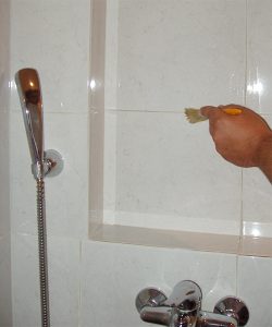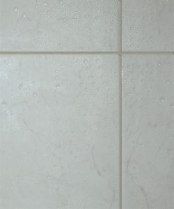 1. The grout in bathrooms and kitchens shows absorbency resulting in moisture appearing in adjacent areas.