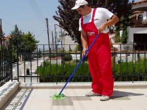 2. PS-21 is poured on the surface and spread with the help of a mudguard.